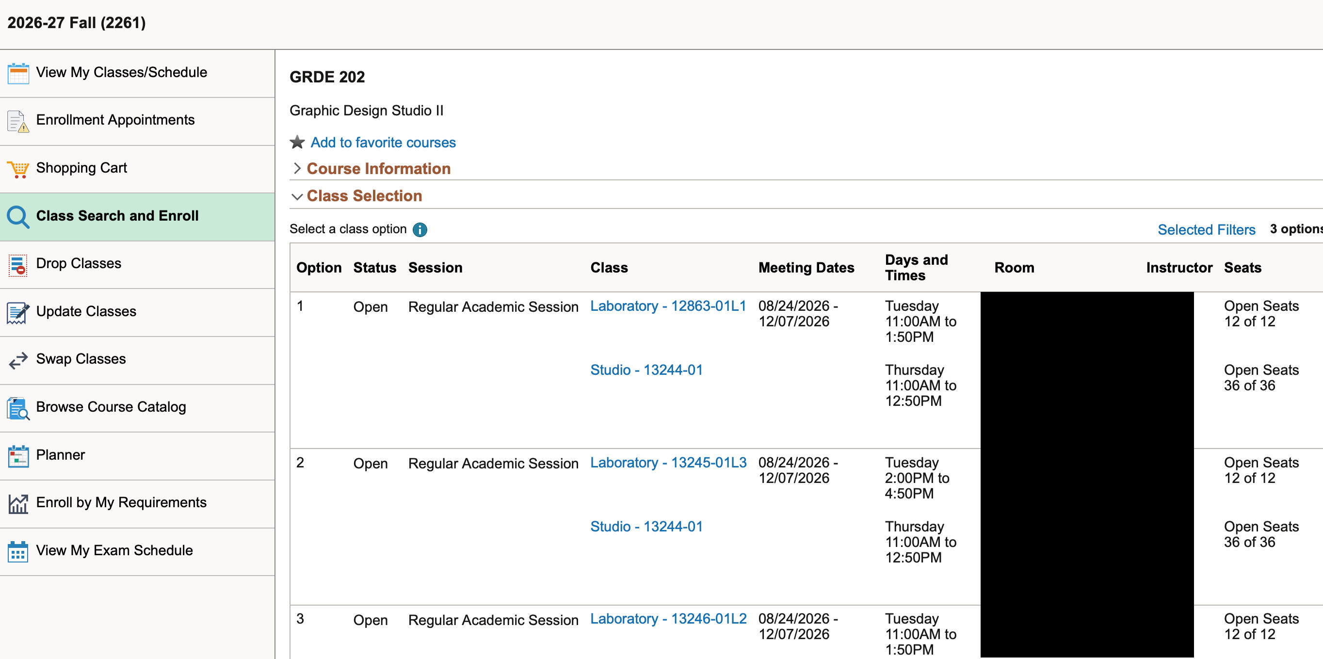 First, go to Enrollment Appointments. Here, you can see the span of time that enrollment occurs. When it is around the time for applying to classes, you will see your time slot at the top of the page. Once enrollment appointments are released, you will be given a time where you can enroll in your classes (The Red highlight within the pictures)Next, head over to "Class Search & Enroll." Here you can search classes that are available for that semester. It will prompt you to select the term you are looking to apply for, so make sure you take note of that. To start searching, you can either use the basic search bar or click "Additional Ways to Search." If you use the main search bar, use specific major codes to find things that are relevant to your progress: GRDE (Graphic Design), ARTH (Art History), etc.Always check in with your advisor to know the classes you need for that semester to stay on track. Using that information, you can head to the CSH ScheduleMaker to prepare and see options that work.
